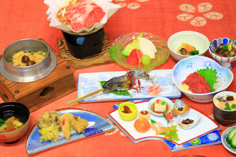 夕食は広間にて相席となります。※一泊朝食、素泊まりコースもございます。お問い合わせください。